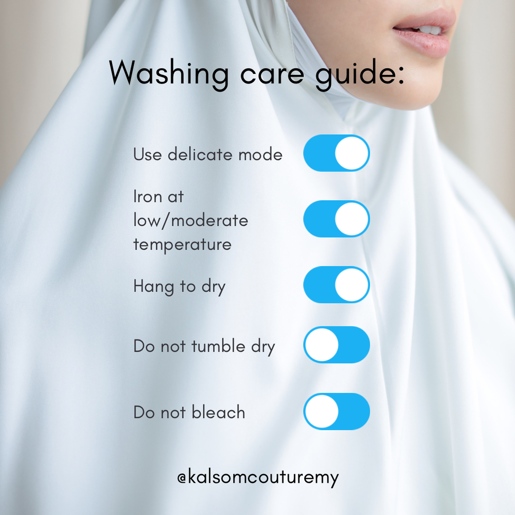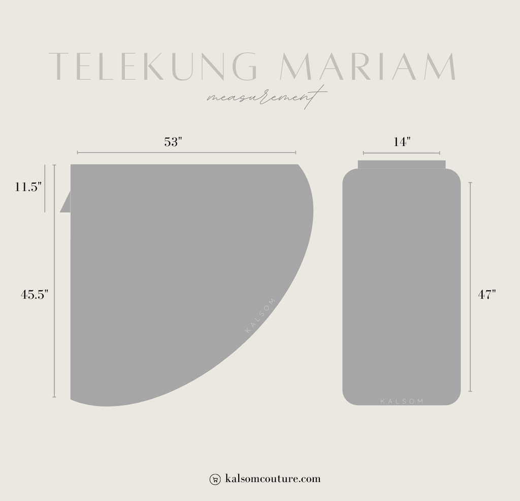 Telekung Mariam - Kalsom's first ever women's prayer wear that made of Premium Matte Satin. Feels soft and luxury on the skin. We made this telekung slightly wider and longer than normal standard size to make sure it fits most sizes. Comes with matching pouch. Refer images above for measurement and care instruction details.